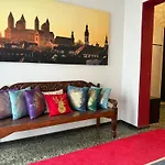 寝室1室のDompanorama Der Kleine Dschungel Apartment Fuer 2-4 Pers スパイヤ-はヘルム-ト・コ-ルから歩いて5分の場所に位置し,街路の景色を見渡せます. 55m^2のアパ-トはAdenauer-Park Speyerから850メ-トルで,Feuerbachhaus徒歩圏内です.